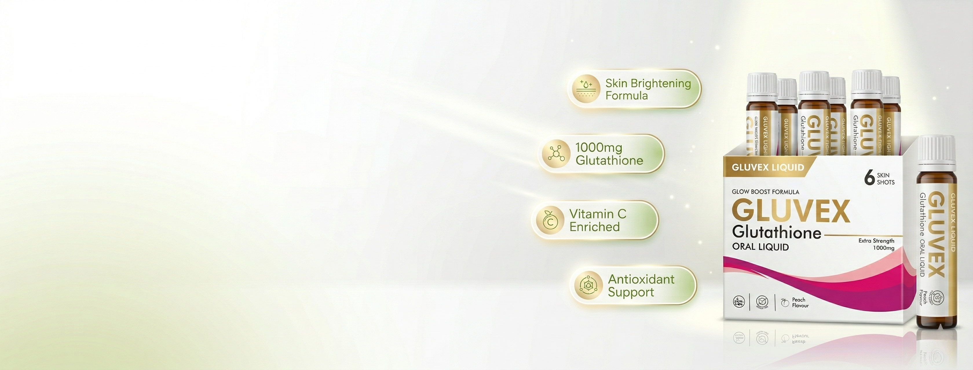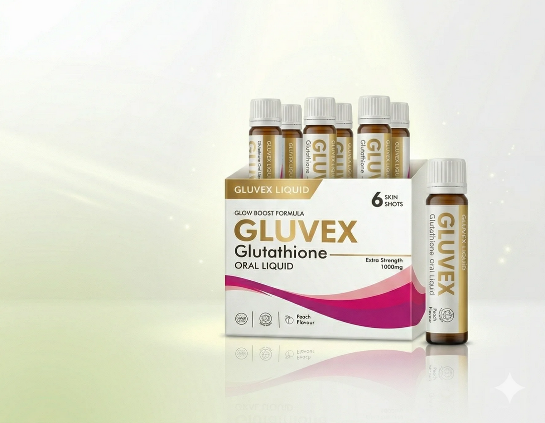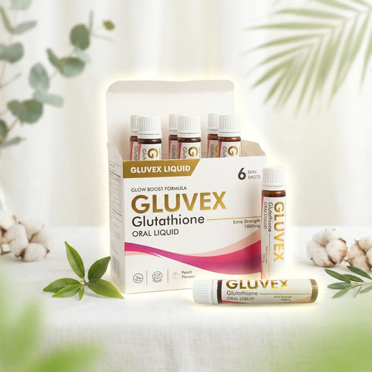 GLUVEX Glutathione Oral Liquid – Glow Boost Formula (1000mg Extra Strength) – 6 Skin Shots